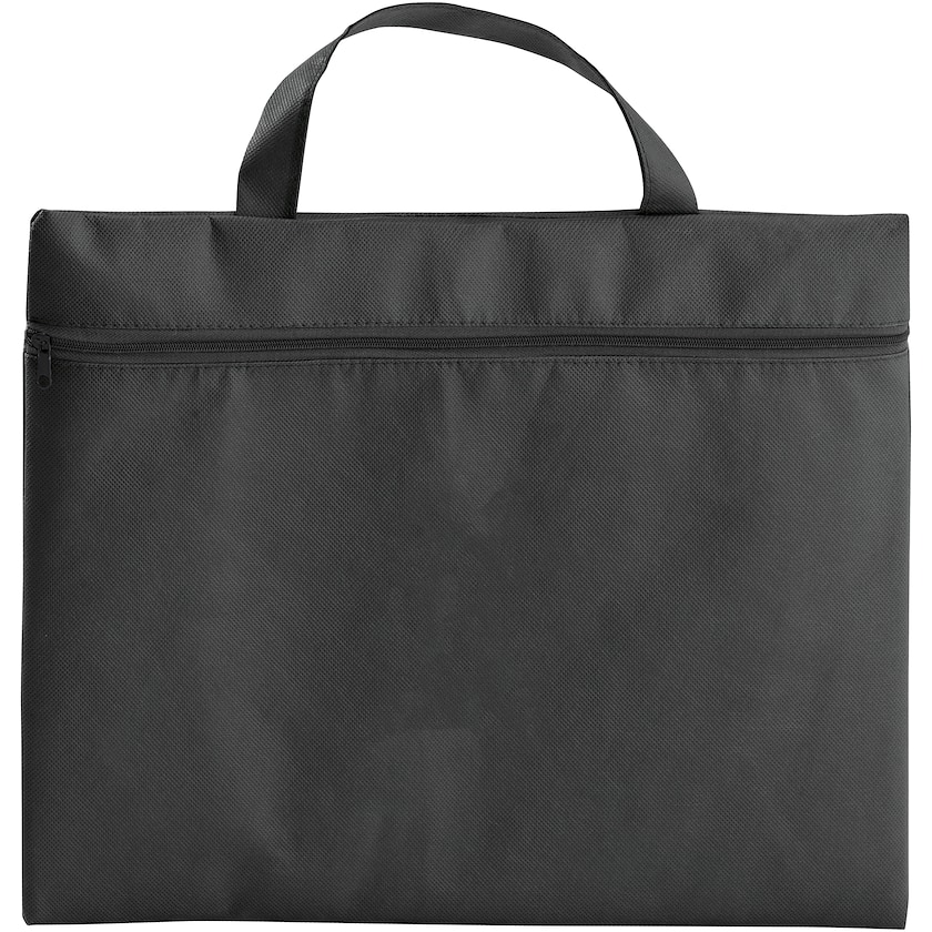 Enkel og meget prisvenlig dokumenttaske. Perry er lavet af non-woven-matriale og er forsynet med korte håndtag og et rum med lynlås. Et perfekt valg til dig som ønsker en billig dokumenttaske med tryk!