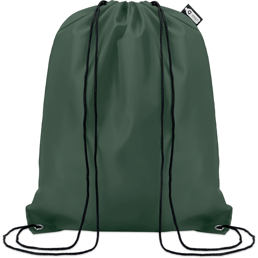 Miljøvenlig gymnastikpose fremstillet af RPET, genbrugte plastflasker. Gymnastikposen er forsynet med et mærke der viser at den er miljøvenlig og fremstillet af RPET. Et godt miljøvalg!
