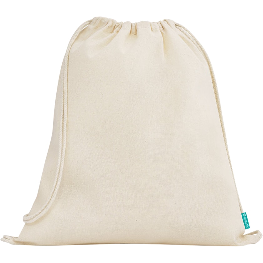 Gymnastikpose i 100% økologisk bomuld. På den ene side er der en etiket med teksten "organic". Bomuldsstoffet er helt uden kemiske pesticider.