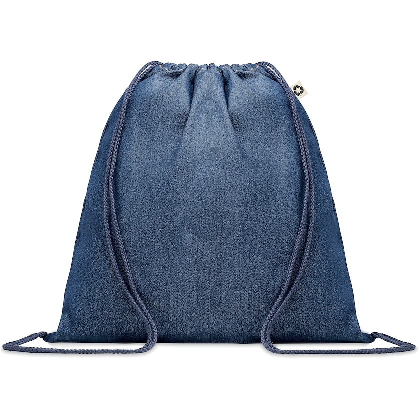 Gymnastikpose i miljøvenligt denimstof. Stoffet er fremstillet af 50% genbrugsbomuld samt 50% almindeligt bomuld. Denimstoffet giver gymnastikposen et udseende som stikker ud af mængden.