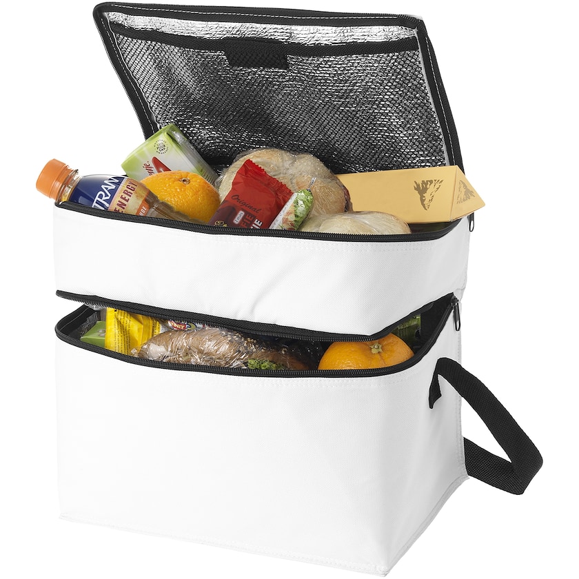 Praktisk køletaske med skulderstropper og to gode rum. Det øvre rum er perfekt for mindre snacks og andre kølevarer mens det nedre er ideelt for større kølevarer. Skulderremme er justerbar.