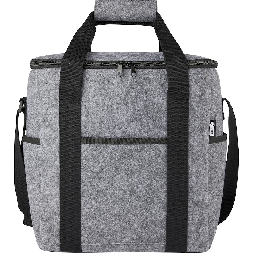 Stor køletaske af GRS-certificeret af genanvendt filt. Køletasken har et stort hovedrum som kan rumme seks 1,5-liters flasker. Rummet er foret med ekstra tyk fødevaresikker PEVA-isolering. Front og siderne er der mindre lommer. Skulderremmen og bærehåndtaget er fremstillet af bomuld.
