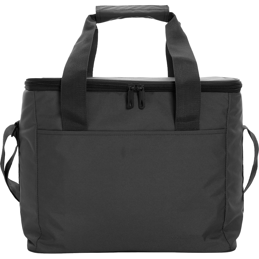 Stor køletaske i genbrugspolyester. Køletasken kan rumme hele 20 dåser. Foran er der en opbevaringslomme til mindre genstande. En miljøvenlig sommergave!