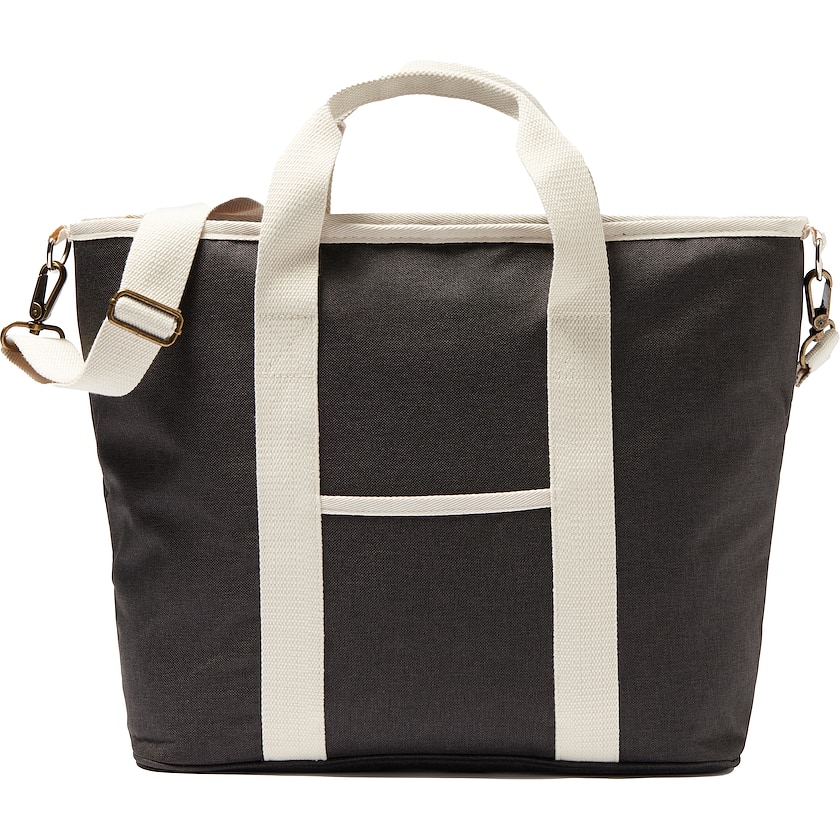 Miljøvenlig køletaske af bomuld og kunstlæder. En køletaske som giver dig picknick med stil! Stoffet er fremstillet af 50% genbrugsmateriale fra PET-flasker. Pga. en tyk PEVA-foring holder køletasken længe på kulden.