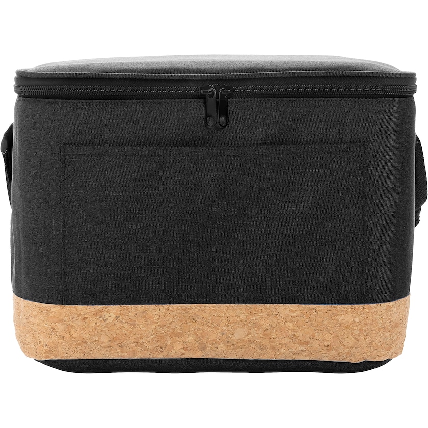 Miljøvenlig køletaske med detaljer i ægte kork. Tasken rummer op til 12 stk. dåser. Stoffet er fremstillet af 50% rPET, dvs. genbrugspolyester.
