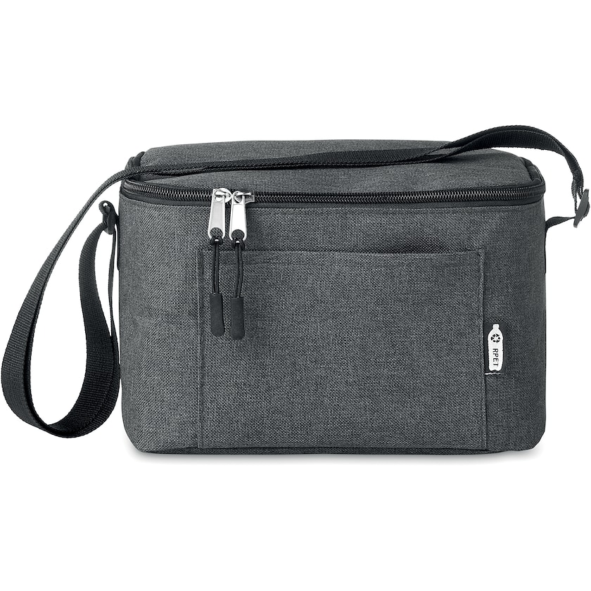 Miljøvenlig køletaske med plads til 6 stk. 33 cl dåser. Tasken er fremstillet af det miljøvenlige materiale rPET. Foret er fremstillet af PEVA. Foran er der en lomme til mindre genstande.