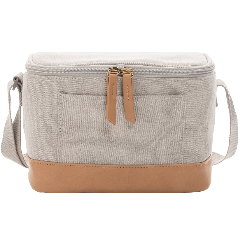 Lille køletaske i miljøvenligt materiale. Foran er der en lille lomme til mindre genstande. Tasken kan rumme det vigtigste til udflugten. Køletasken er fremstillet af 40% genbrugspolyester og 60% genbrugsbomuld.
