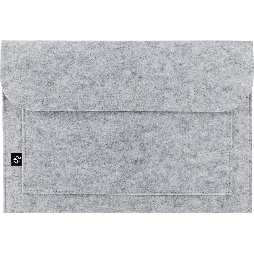 Laptopsleeves af genbrugsfilt. Passer til de fleste 14 tommers bærbare. Filtstoffet er fremstillet af rPET, dvs. genanvendte PET-flasker. Foran er der en lomme med velcrolukning.