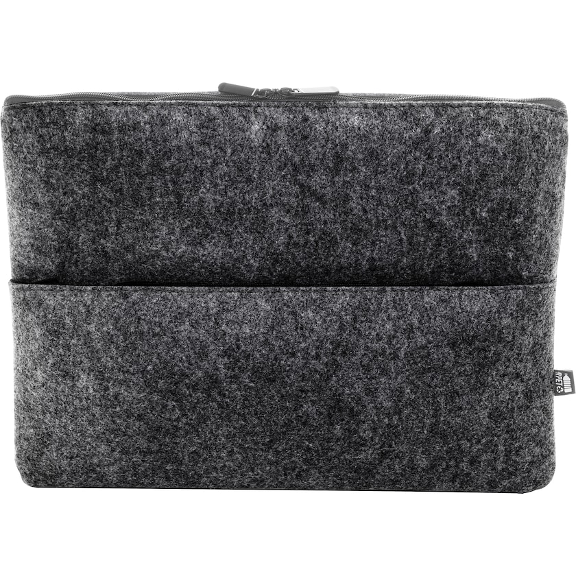 Laptopsleeves af miljøvenligt filt. Cosham passer de fleste bærbare op til 15 tommers. Foran er der en lomme til mindre genstande. Filtmaterialet er fremstillet af rPET, dvs. genanvendte PET-flasker.