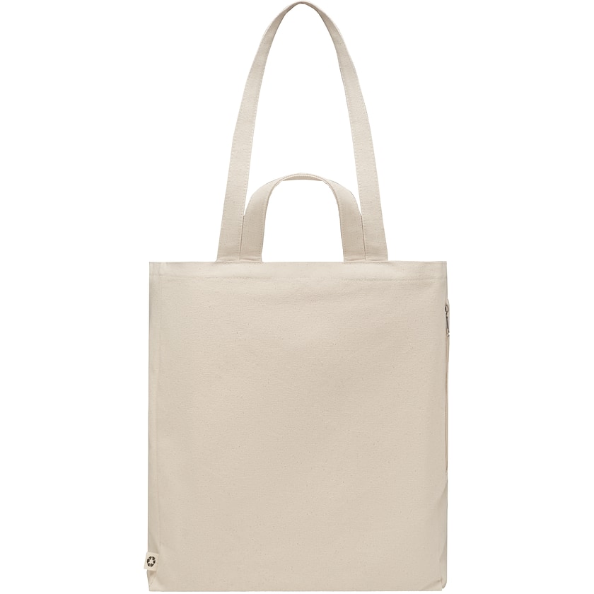 Mulepose af solid bomuldsblanding. Brienz er fremstillet af 70% genbrugsbomuld og 30% genbrugspolyester. Posen har både lange og korte håndtag. På indersiden er der en opbevaringslomme med lynlås.