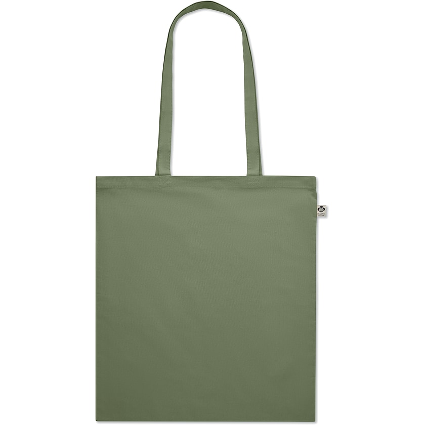 180 grams bomuldspose af økologisk bomuld. Chipman har lange håndtag. På den ene side er der en etiket som viser at den er fremstillet af økologisk bomuld.