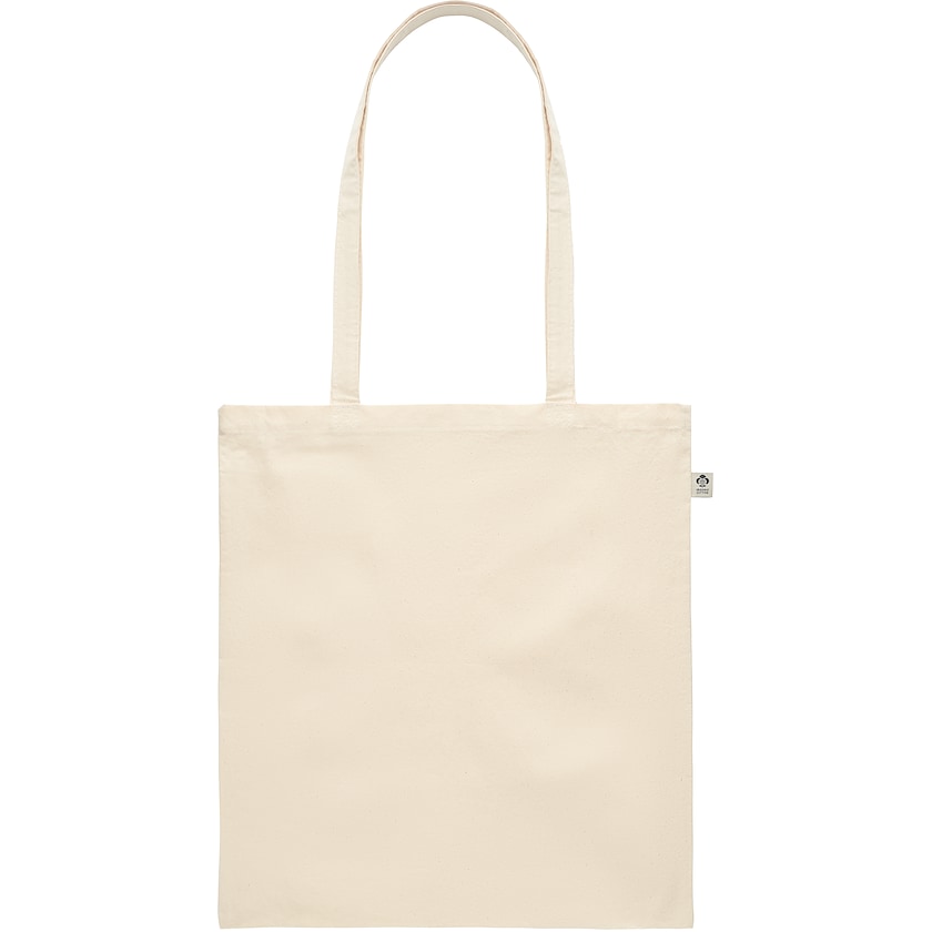 180 grams bomuldspose i økologisk bomuld. Bomuldsposen er lange håndtag som gør at den er bekvem at bære over skulderen.
