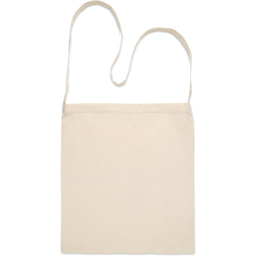 Naturfarvet bomuldspose med et langt håndtag. Det lange håndtag gør at posen er perfekt til at bære over skulderen.