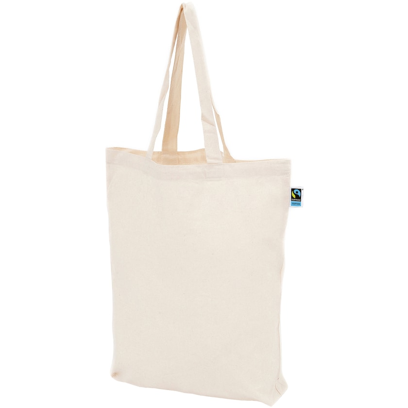 Fairtrade-certificeret 160 gram/ m² mulepose i bomuld med lange håndtag. Earth Fairtrade findes i flere friske farver. Udvendigt er en etiket der indikerer at produktet er Fairtrade-certificeret. En perfekt mulepose til dig der vil tage del i at bygge en bedre og mere retfærdig verden!