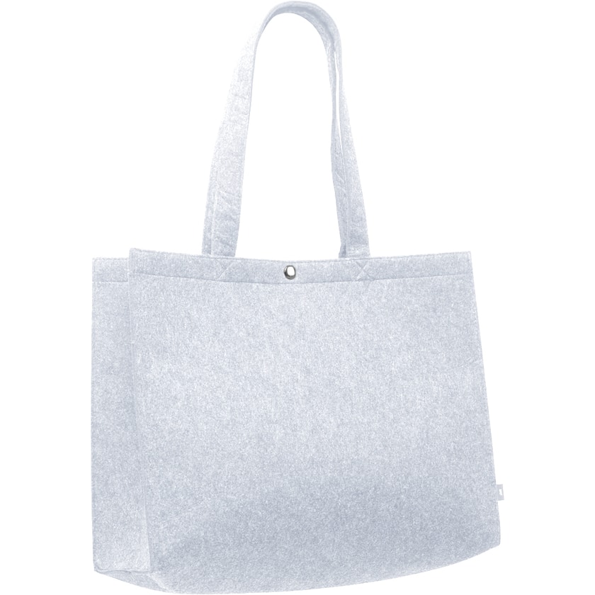 Slidstærk filttaske fremstillet af genbrugsmateriale. Lattimore er meget rummelig, har lange håndtag og lukkes med en trykknap. Filtstoffet er fremstillet af genbrugs PET-flasker. Kun 1-trykfarve er mulig.