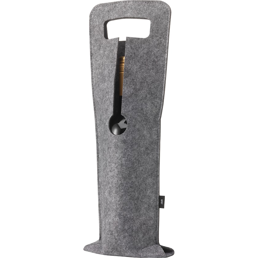 Vinpose i miljøvenligt filt. Filtmaterialet er fremstillet af genbrugs PET-flasker. Vinposen rummer en vinflaske. Kun 1-trykfarve er mulig.