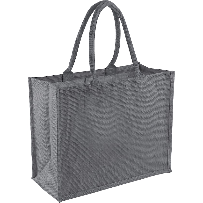 Stor mulepose i farvet jutestof. Håndtagene er produceret i bomuld. Hvis der skal trykkes flere farver skal disse være separeret.