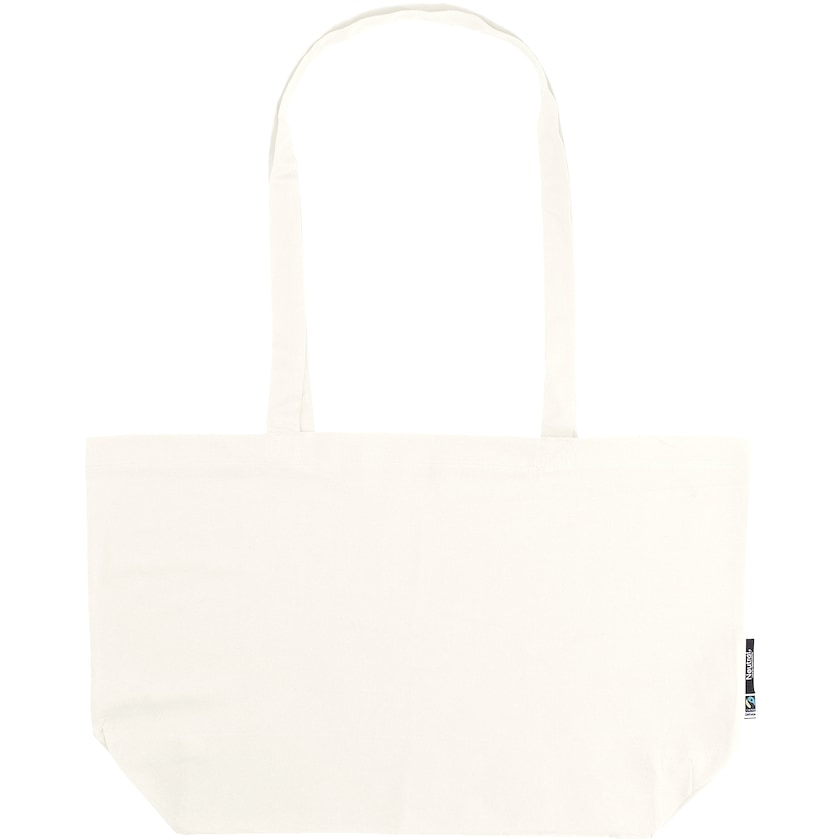 Bærepose fremstillet af økologisk og Fairtrade-certificeret bomuld. Håndtagene er 80 cm lange. Certificeret i overensstemmelse med Fairtrade, EU Ecolabel, SA8000 og Oeko-tex. Bestil miljøvenlige bomuldsposer med logo hos Axon Profil!