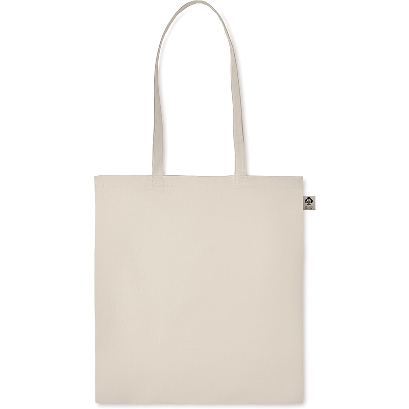 Bomuldspose af 140 grams økologisk bomuld. Bomuldsposen har lange håndtag og er produceret i henhold til OEKO-TEX.