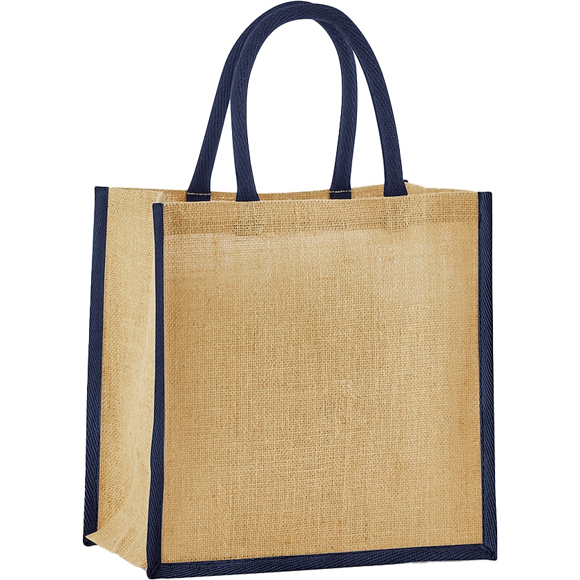 Lille jutepose med korte håndtag. Stoffet er lavet af ulamineret jute hvilket giver posen et rustikt udseende. Håndtaget er lavet af bomuld.