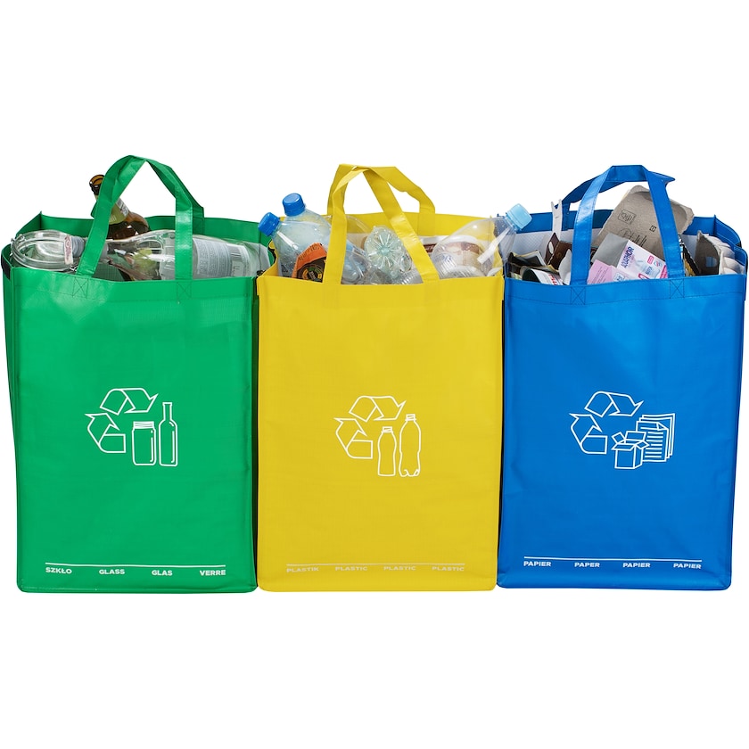 Sæt med tre poser til affaldssortering og smartere genbrug. Poserne er produceret i slidstærkt PP-materiale og de tre poser kan sættes sammen med velcro. Trykprisen henviser til tryk på en pose.
