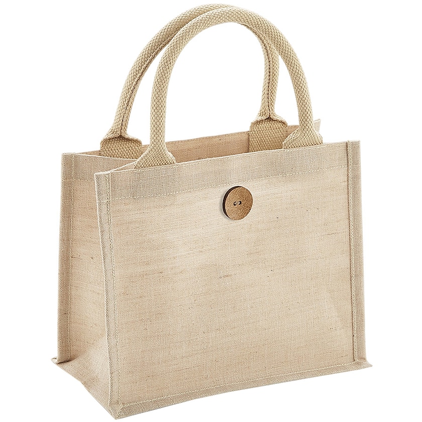 Lille bærepose i naturmateriale. Montagu er fremstillet af et højkvalitets lamineret stof af 72% jute og 28% bomuld. Bærehåndtagene er af 100% bomuld. En lille jutepose i højeste kvalitet!