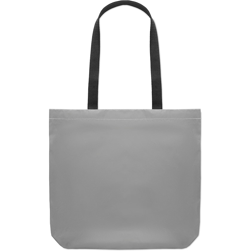 Indkøbspose af reflekterende polyesterstof. Posen har lange håndtag og en bund som gør den mere rummelig. Hele posen (inklusive håndtag) er fremstillet i reflekterende materiale som øger synligheden i mørke.