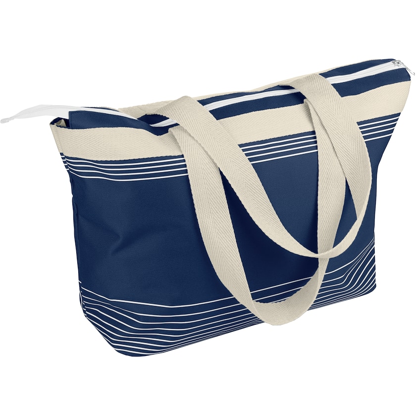 Tidløs strandtaske der også fungerer som shoppingtaske. Tasken er fremstillet af polyester med detaljer og håndtag af bomuldscanvas. Med inderlomme.