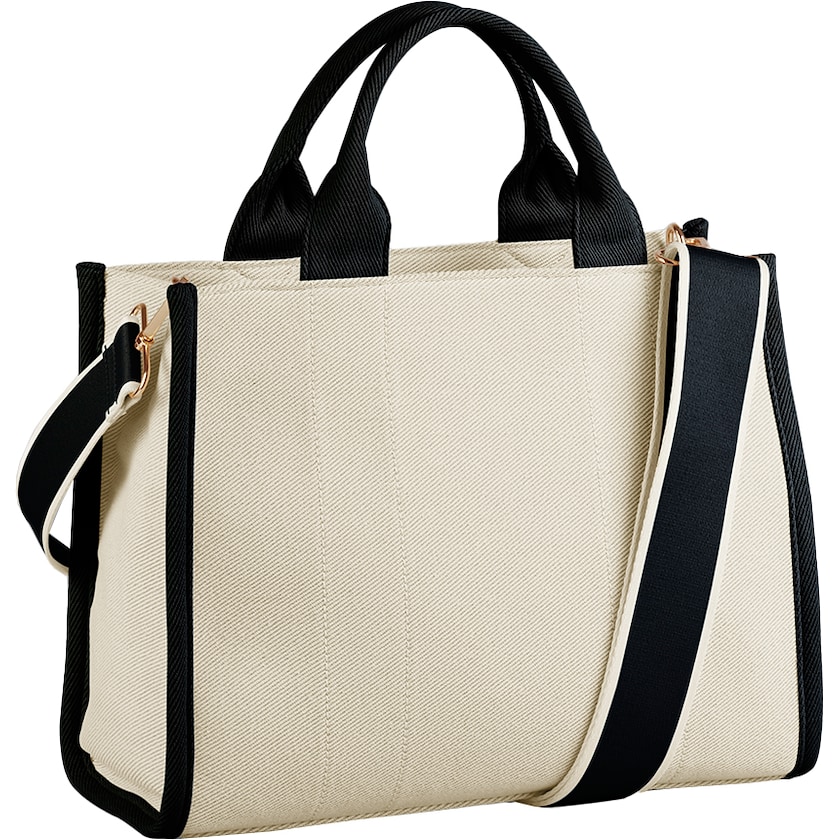 Eksklusiv strandtaske med kraftig stof og skulderrem. Stoffet er fremstillet af en solid blanding af bomuld og polyester. Foret er fremstillet af genbrugspolyester.