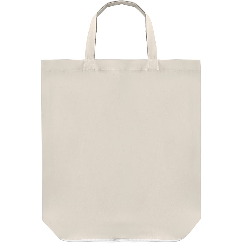 Bomuldspose der kan foldes så den tager minimalt med plads. Posen er produceret i naturfarvet bomuld og har korte håndtag. Leveret udfoldet.