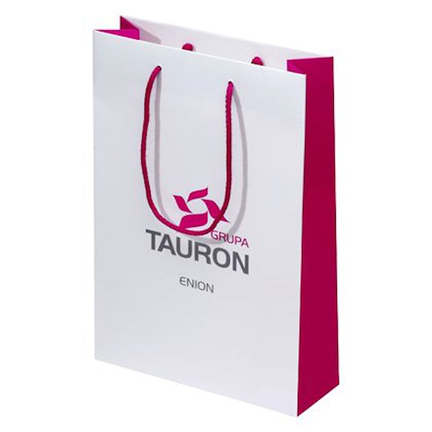 Moderne papirspose i mediumstørrelse med snørehåndtag og blanklaminering. Snorehåndtag og blanklaminering giver posen det der luksuriøs præg. Papirposen har papforstærket foldet top og papbund for ekstra holdbarhed. Du bestemmer designet af alle posens sider og har en række snørefarver at vælge imellem. Tryk i maksimalt tre farver efter Pantoneskalan og derover i CMYK. Papirposen er fremstillet i EU.