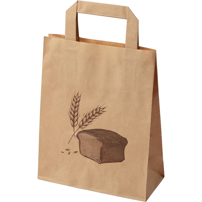 Papirspose med logo med flade håndtag. Vælg mellem brunt eller hvidt papir. Trykprisen henviser til tryk på en af siderne.