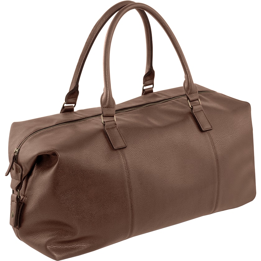 Eksklusiv weekendtaske i kunstlæder. Indersiden er beklædt med et elegant stribet stof. Indvendigt er der opbevaring til værdigenstande. Tasken kan enten bæres i hånden eller over skulderen.