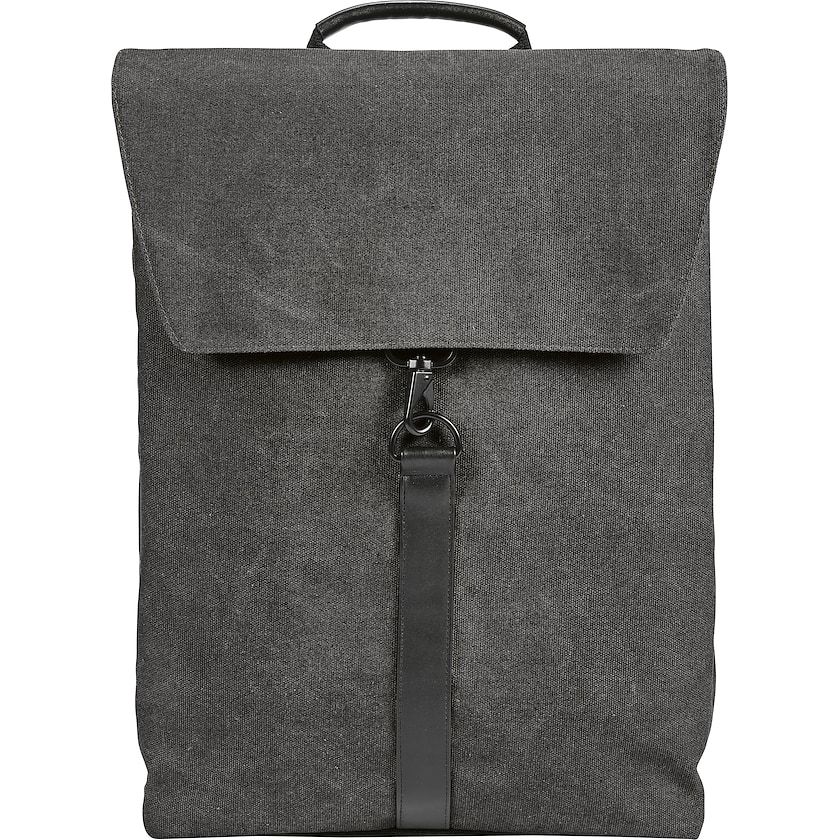 Eksklusiv computerrygsæk af genbrugs bomuldslærred. Rummer en 17 tommers bærbar. Bagside og stropper er foret.
