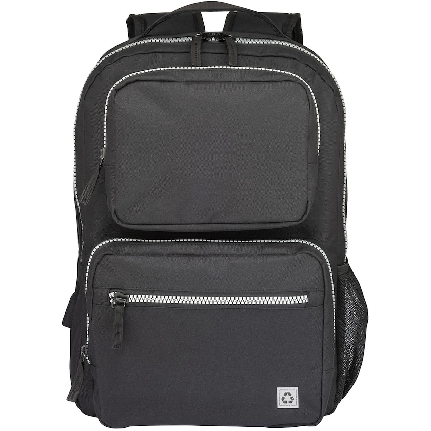 Miljøvenlig computerrygsæk af rPET. Indvendigt er der et polstret rum som kan rumme en 15 tommers bærbar. Bagside og skulderremme er bekvemt polstret. Kun 1-farvetryk er muligt.