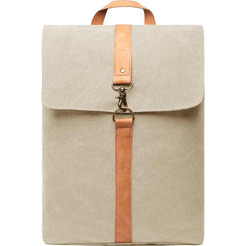 Elegant computerrygsæk med miljøvenligt lærredsstof. Indvendigt er der et foret rum til en 15 tommers bærbar. Stoffet er fremstillet af 62% genbrugsbomuld og 34% almindeligt bomuld. Rygsækken har flotte detaljer i kunstlæder og metal.
