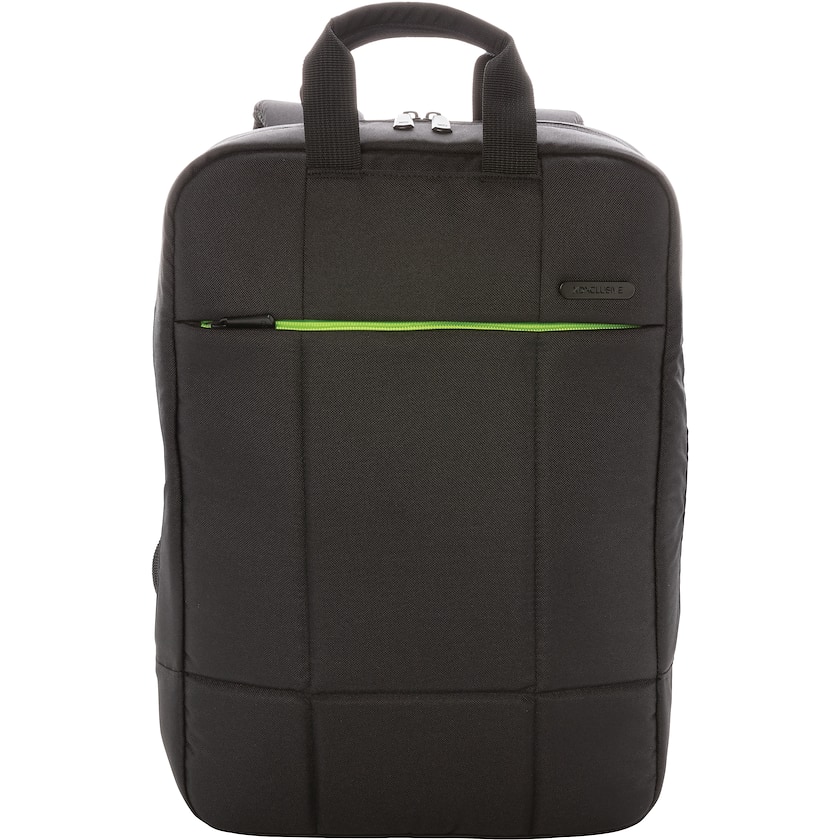 Miljøvenlig computertaske af RPET med moderne design. Indvendigt har den et foret rum som kan rumme de fleste bærebare op til 15,6 tommer. Rygsækken er helt PVC-fri. Registreret design®.