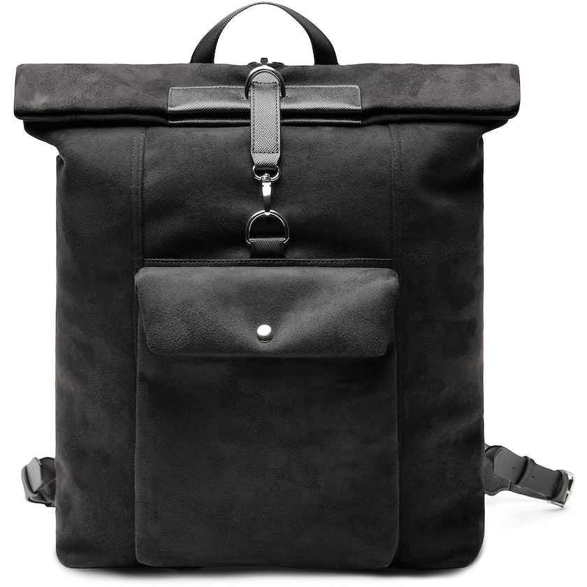 Tidløs designet computerrygsæk fra Vinga. Rygsækken har flere lommer og et låg, der lukkes med en magnetlås. Yderstoffet er lavet af kunstigt ruskind fremstillet af genbrugspolyester.