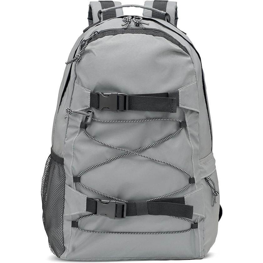 Sportsrygsæk med højreflekterende stof. Bagside, stropper og bund er polstret. Indvendigt er der et foret rum til en 15 tommers bærbar. Kun 1-trykfarve er mulig.