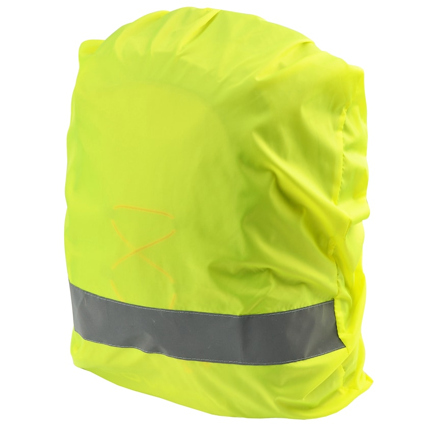 Smart rygsæksovertræk der gør dig tydelig i den mørke vintertid. Overtrækket er neongult og udstyret med et stort refleksbånd. På bagsiden findes to remme, der forhindrer at overtrækket falder af. Trykket laves med screentryk.