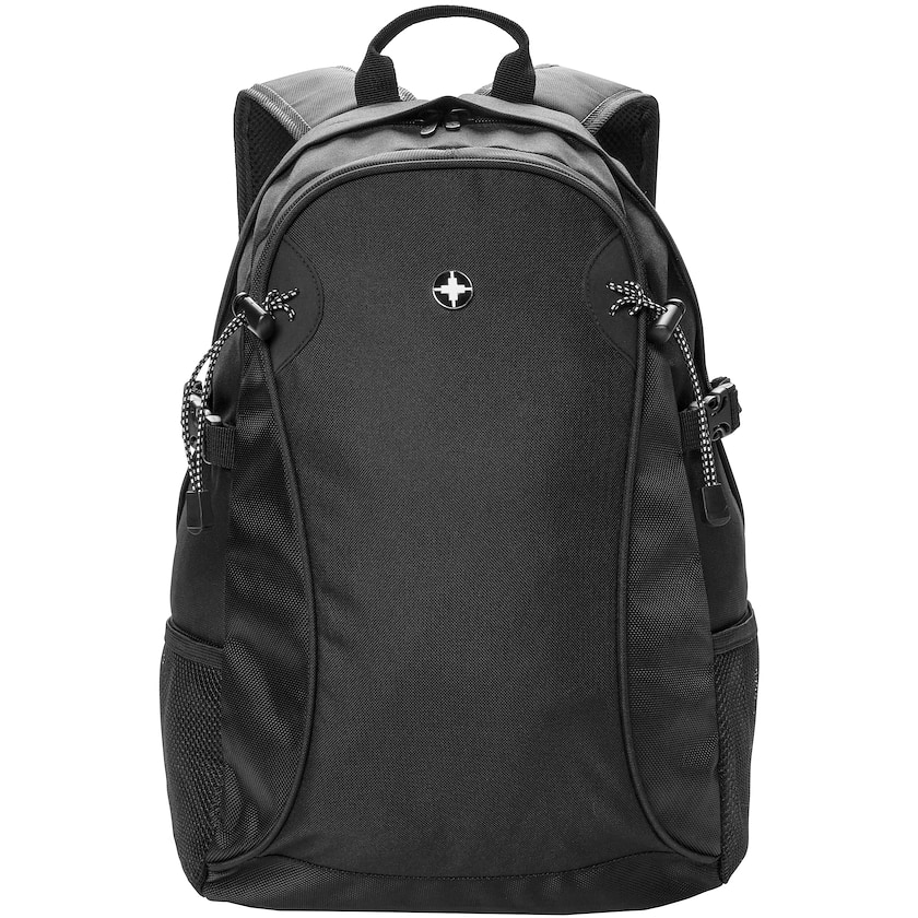 Sporty rygsæk fra Swiss Peak. Rygsækken har et behageligt polstret bagpanel. Der er netlommer på siderne. Rygsækken er helt PVC-fri.