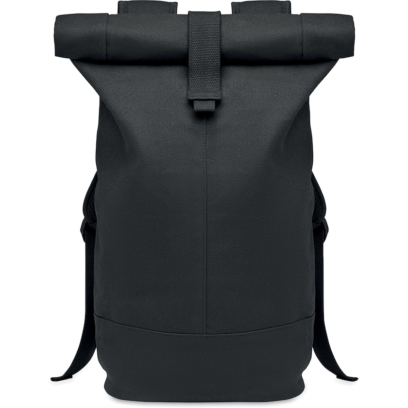 Roll-top-rygsække med sort lærredsstof. Rygsækkens stof vejer hele 340 gram/ m². Rygsækkens bagside er foret for øget bærekomfort. Foret er fremstillet af miljøvenligt rPET.