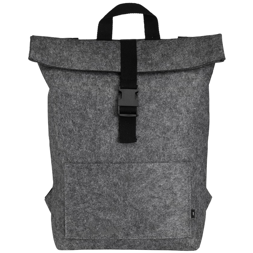 Roll-top-rygsæk i filtstof i genbrugsmateriale. Stoffet er fremstillet af genbrugs PET-flasker og er meget slidstærkt. På forsiden er der en mindre opbevaringslomme. Kun 1-trykfarve er mulig.