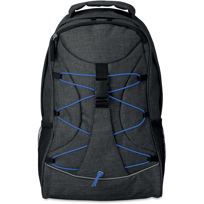 Rygsæk med snøre som lyser op i mørket. På rygsækkens sider er der netlommer til vandflasker. I toppen er der et bærehåndtag. Snorene er af typen "glow in the dark".