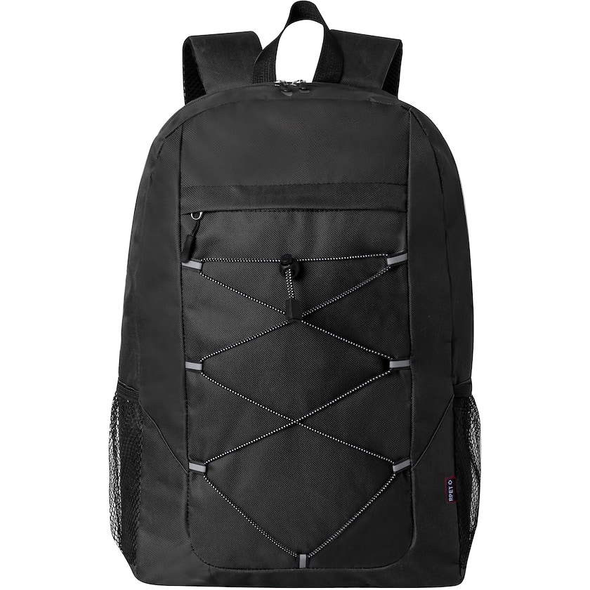 Miljøvenlig rygsæk til lav pris. Hull er fremstillet af rPET, dvs. genbrugs PET-flasker. Foran er der en lomme med lynlås. Bagside og stropper er foret. På siderne er der netlommer.