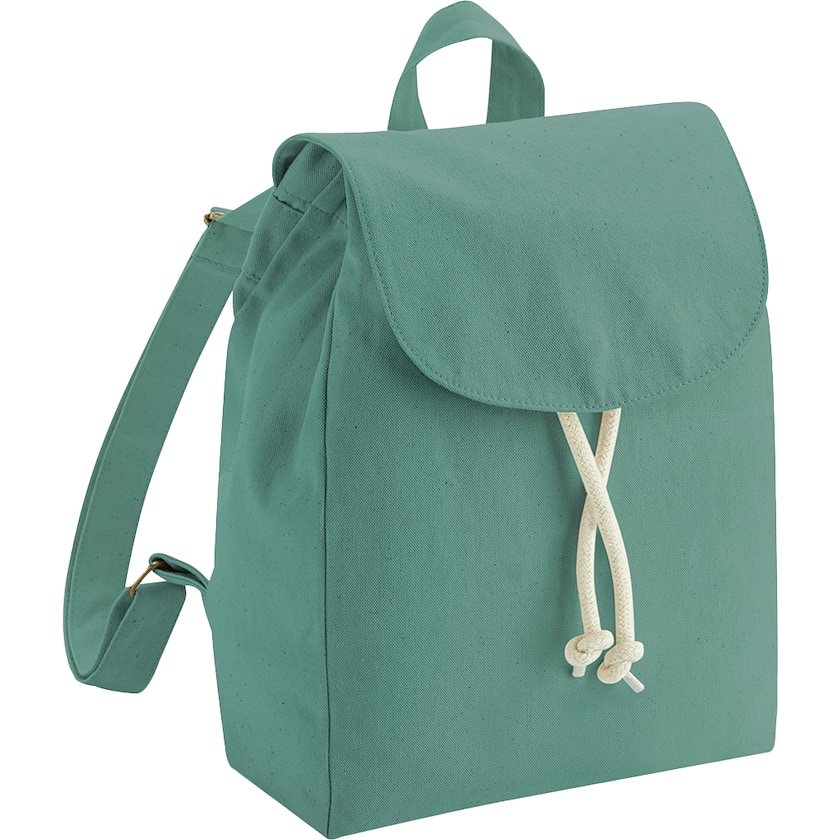 Lille rygsæk i 100% økologisk bomuld. Lukningen holdes lukket med en trykknap. Rygsækken rummer 5 liter. En pæn rygsæk i et kraftigt bomuldsstof.