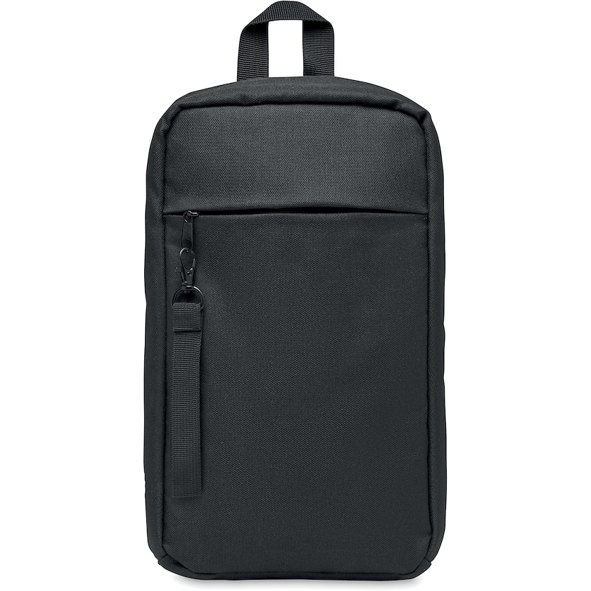 Lille crossover-taske med stof i genbrugspolyester. Praktisk til opbevaring af fx mobiltelefon, pung og nøgler. Stropperne er aftagelige.