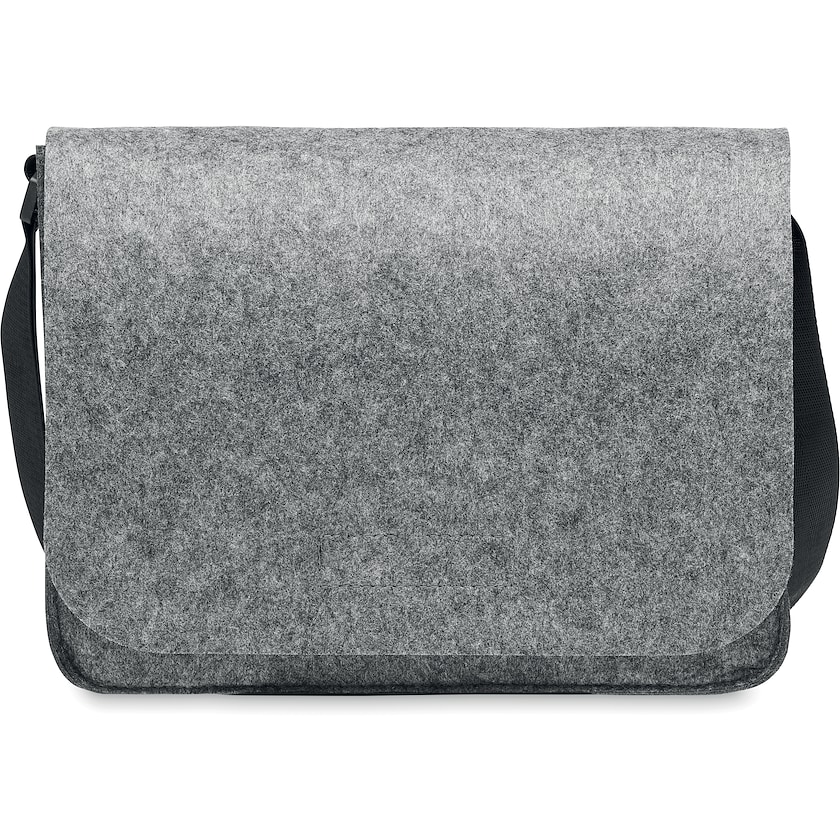 Miljøvenlig skuldertaske i kraftigt filt stof. Filt stoffet er fremstillet i rPET, dvs. genbrugte PET-flasker. En smart skuldertaske i god kvalitet.