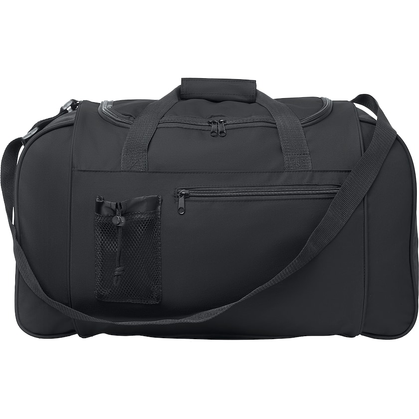 Billig sportstaske i god kvalitet. På taskens ene side er der en opbevaringslomme med lynlås. Skulderremmen er aftagelig. Et perfekt valg for dig som ønsker at købe en robust sportstaske med logo til en god pris.
