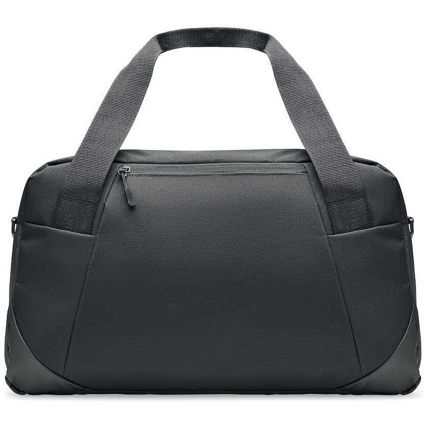 Sportstaske med solidt stof og detaljer i kunstlæder. På frontsiden er der en lomme med lynlås. Indvendigt er der en inderlomme samt to mindre foret rum.